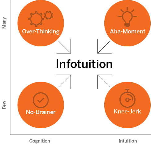 Row is a strong advocate for data-driven decision making, but she also says that it inevitably is done “on a continuum between thinking and feeling,” as she writes in her book Think Less, Live More (see “A Matrix for Decisions” on page 53.)