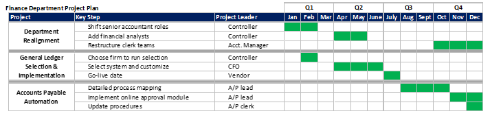Once you have assessed your current state and identified your future, or mature state, all that is left is to figure out how to get from point A to point B. While you may be sick of charts, I find using a Gantt chart format is a great way to visually depict what will happen and in what sequence.